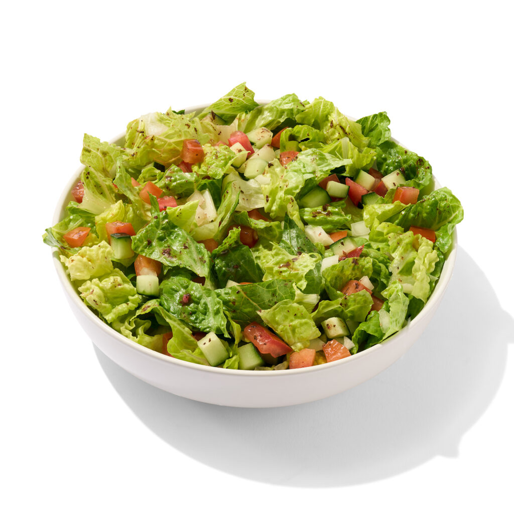 Arabic Salad Chopped lettuce, tomatoes, cucumbers, onion, parsley and mint, dressed with fresh lemon and olive oil.